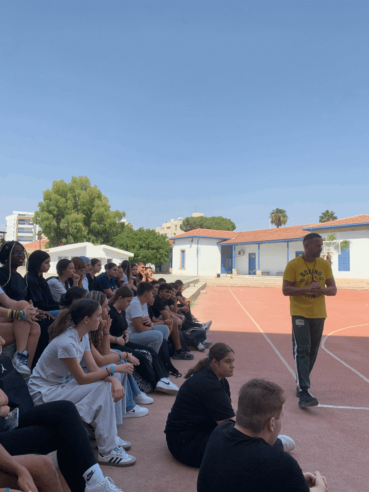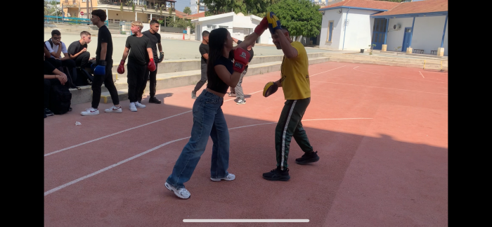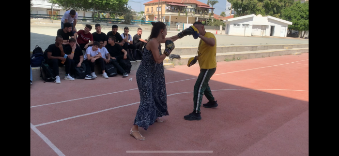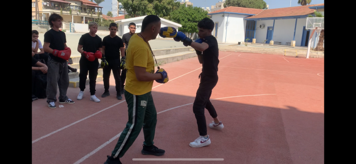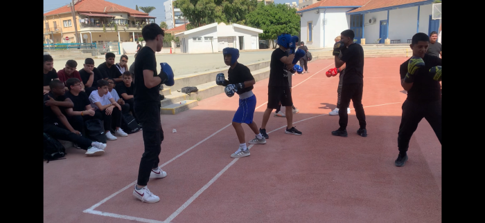 β) Γνωριμία με το άθλημα της Πυγμαχίας. Εισαγωγή – Ενημέρωση – Επίδειξη στο άθλημα της Πυγμαχίας από τον κο Χαράλαμπο Γιωργούδη έναν από τους πιο ιστορικούς μαχητές της Κύπρου, Πρωταθλητής, Εκπαιδευτής – Προπονητής, μαζί με πυγμάχους αθλητές του, τον Λούη Παύλου, Λούκα Αντωνίου και Joel Kwilu–Kayala. Ακολούθως μύηση των μαθητών – μαθητριών του Σχολείου μας με την ενεργή συμμετοχή τους, λαμβάνοντας όλα τα απαραίτητα μέτρα ασφαλείας.