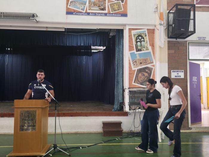 Στο πλαίσιο της δράσης «Μέσα από τα μάτια ενός Πρωταθλητή», οι μαθητές του σχολείου μας θα έχουν την ευκαιρία να γνωρίσουν από κοντά τον Παγκόσμιο Πρωταθλητή στη σφυροβολία, Ιωσήφ Κεσίδη. Ο νεαρός αθλητής θα μοιραστεί με τους μαθητές το ταξίδι του προς την κορυφή, τις δυσκολίες και τις θυσίες που απαιτεί ο πρωταθλητισμός, αλλά και τα όνειρα και τους στόχους που συνεχίζει να κυνηγά. Μέσα από τη συζήτηση, οι μαθητές θα αντλήσουν έμπνευση και θα ανακαλύψουν τη δύναμη της επιμονής, της σκληρής δουλειάς και της πίστης στον εαυτό τους.