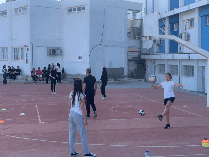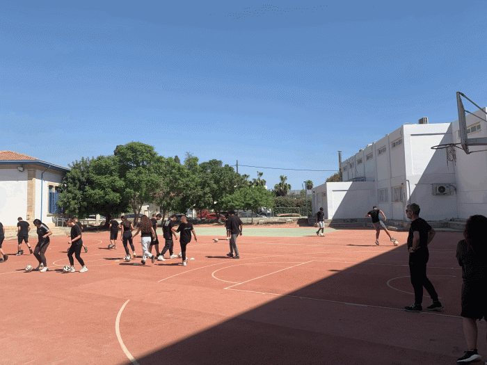 β) Μύηση στα μυστικά του αθλήματος του Ποδοσφαίρου. Εισαγωγή – Ενημέρωση – Επίδειξη στο άθλημα του Ποδοσφαίρου από τον Προπονητή και πρώην Ποδοσφαιριστή κο Αρτέμη Σάββα και συνοδείας αθλητών – ποδοσφαιριστών του. Ακολούθως βιωματική συμμετοχή των μαθητών – μαθητριών του Σχολείου μας.